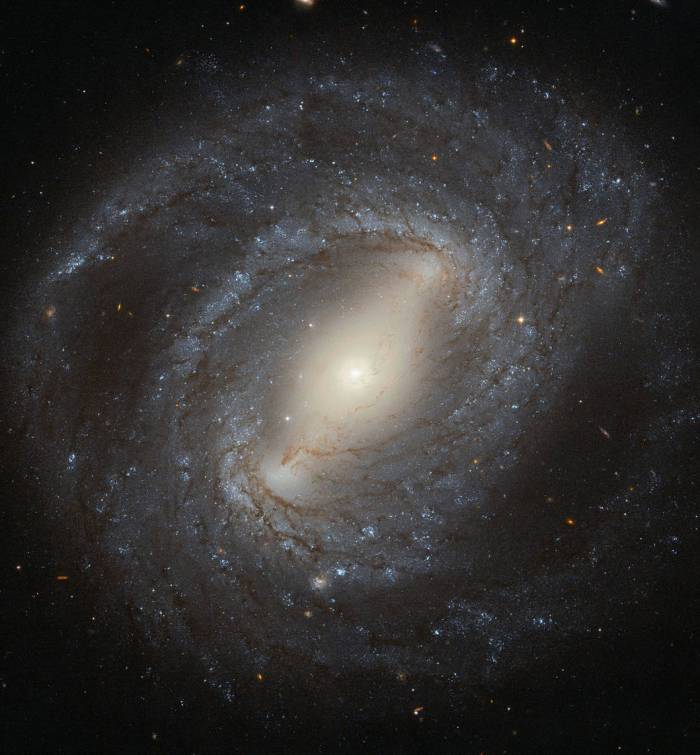 Discovered in 1784 by the German–British astronomer William Herschel, NGC 4394 is a barred spiral galaxy situated about 55 million light-years from Earth. The galaxy lies in the constellation of Coma Berenices (Berenice’s Hair), and is considered to be a member of the Virgo Cluster. NGC 4394 is the archetypal barred spiral galaxy, with bright spiral arms emerging from the ends of a bar that cuts through the galaxy’s central bulge. These arms are peppered with young blue stars, dark filaments of cosmic dust, and bright, fuzzy regions of active star formation. At the centre of NGC 4394 lies a region of ionised gas known as a LINER. LINERs are active regions that display a characteristic set of emission lines in their spectra— mostly weakly ionised atoms of oxygen, nitrogen and sulphur. Although LINER galaxies are relatively common, it’s still unclear where the energy comes from to ionise the gas. In most cases it is thought to be the influence of a black hole at the centre of the galaxy, but it could also be the result of a high level of star formation. In the case of NGC 4394, it is likely that gravitational interaction with a nearby neighbour has caused gas to flow into the galaxy’s central region, providing a new reservoir of material to fuel the black hole or to make new stars.
